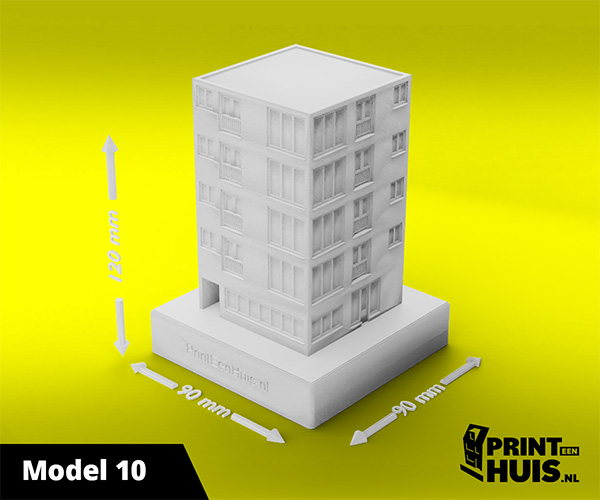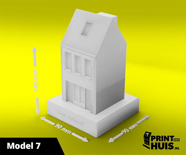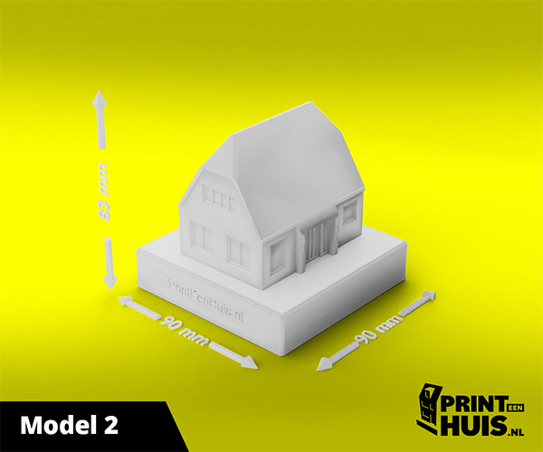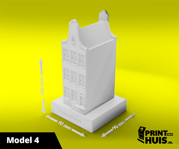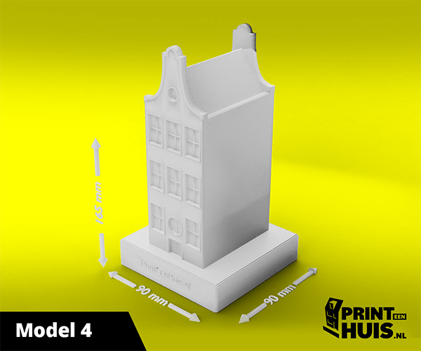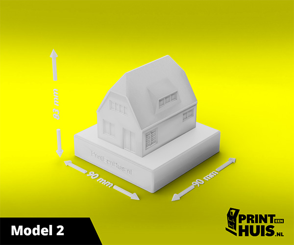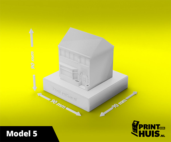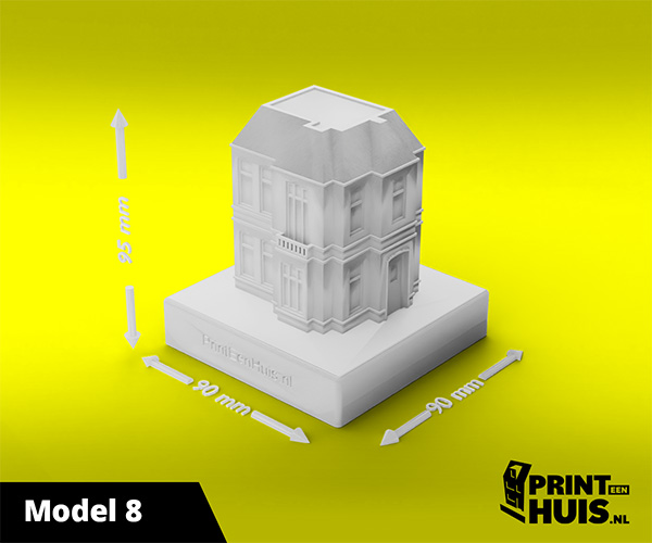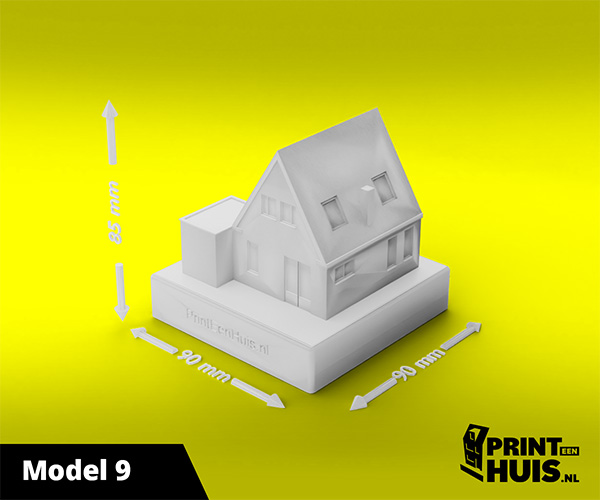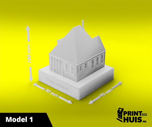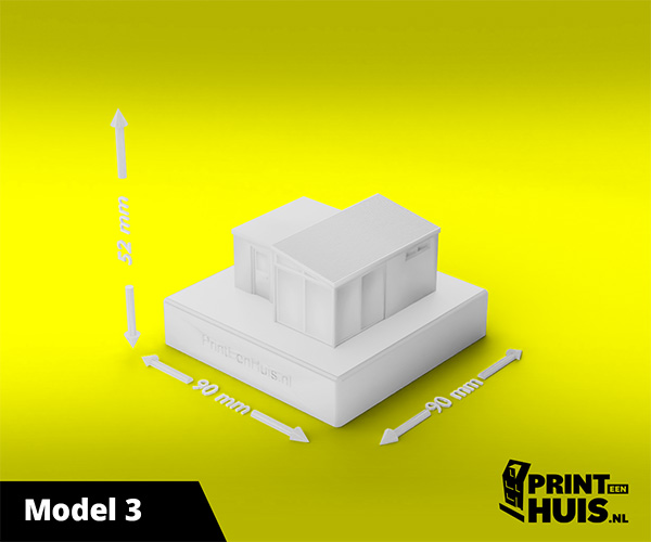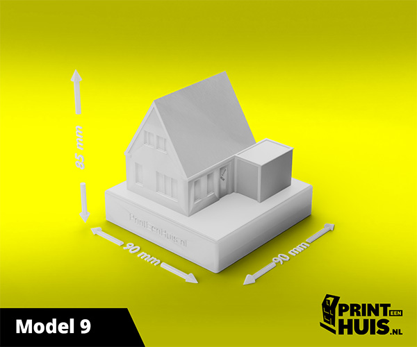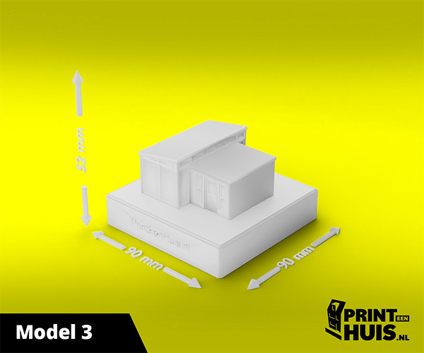 Zit jouw model er niet tussen? Geen probleem, elke dag maken wij een "custom-made" model voor onze klanten. Zo kan jouw model, woning of bedrijfspand een werkelijkheid worden. Ons concept is werken met een 9x9cm voet waarop het model van max. 17cm kan worden geplaatst. Deze modellen kunnen in elke kleur worden geprint.