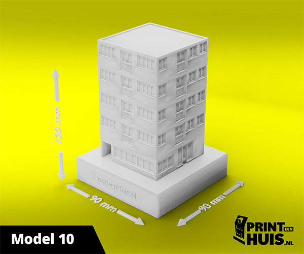 Zit jouw model er niet tussen? Geen probleem, elke dag maken wij een "custom-made" model voor onze klanten. Zo kan jouw model, woning of bedrijfspand een werkelijkheid worden. Ons concept is werken met een 9x9cm voet waarop het model van max. 17cm kan worden geplaatst. Deze modellen kunnen in elke kleur worden geprint.